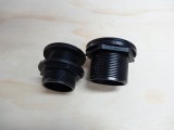 The PVC pipes are connected between the inside of your tote and the outside world with bulkhead fittings. These were the most expensive part of my home made filter costing around $18 for both. For both bulkhead fittings I purchased them as slip fitting on the inside and threaded on the outside. I just used friction fit on the inside where it is not critical if the pipes are not absolutely watertight and the threaded fitting on the outsides allow me the flexibility to disconnect everything in case I need to move the filter.