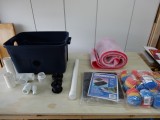 Finally you will need to make some sort of support system to keep the filter material above the bio balls. I used a plastic mesh container that was used to grow seedlings in and I cut it to fit neatly in the tote to support the filter material over the bio balls and pot scourers.
